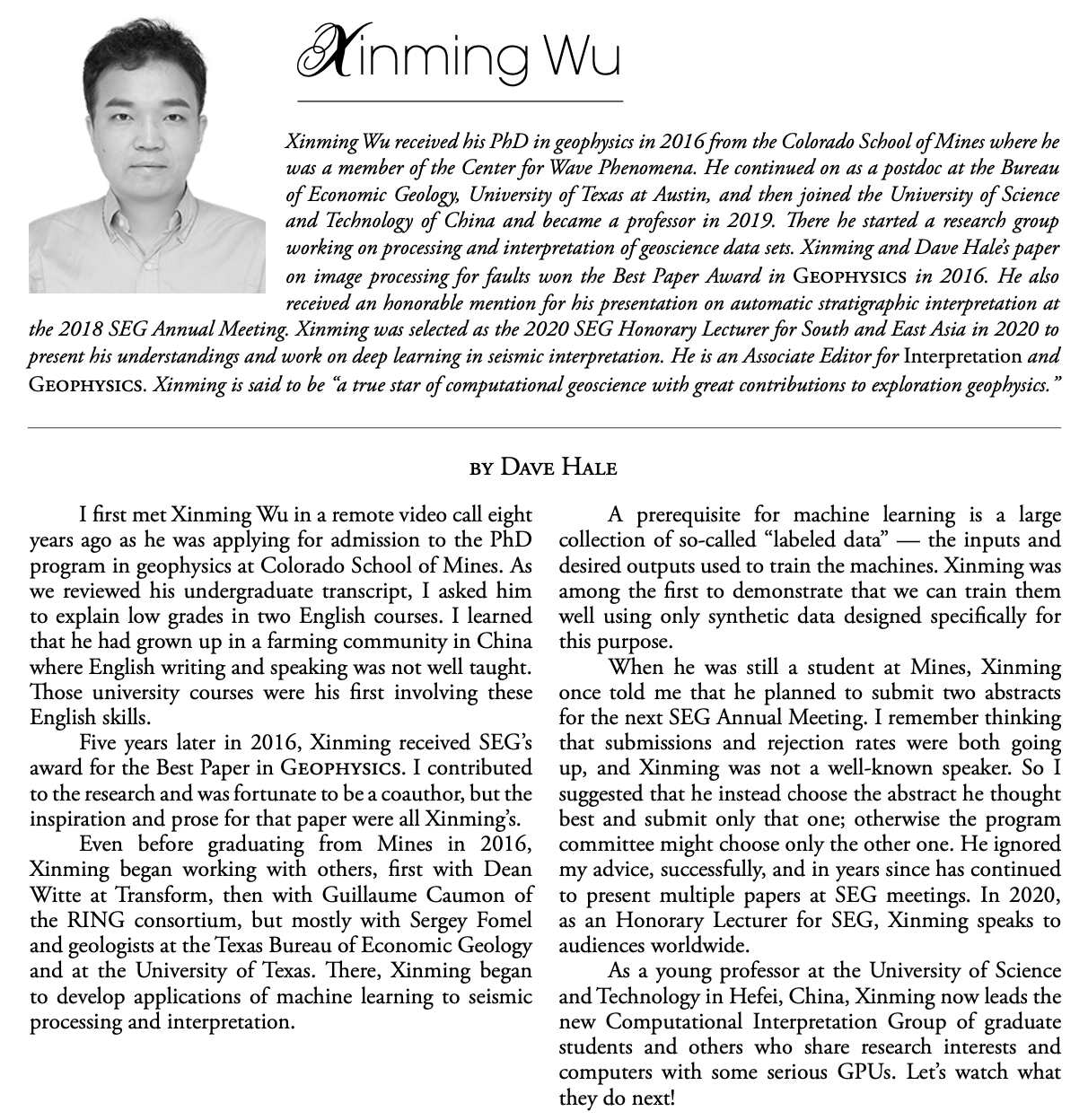 On May 16, 2020, Xinming shared his experience with young geophysics students in an interview by SEG China.